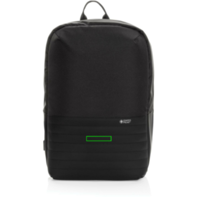 This Swiss Peak AWARE™ 15.6" laptop backpack with anti-theft back opening makes it easy to carry your tech gadgets and personal items out and about. The inner features a laptop and tablet compartment. RFID safe pockets for your wallet and passport. Connect your power bank easily to the integrated USB Type-C charging port and charge your phone or tablet on the go. Hidden easy access back pocket. With AWARE™ tracer that validates the genuine use of recycled materials. Each bag has reused 20.8 PET bottles. 2% of proceeds of each Aware™ product sold will be donated to Water.org.