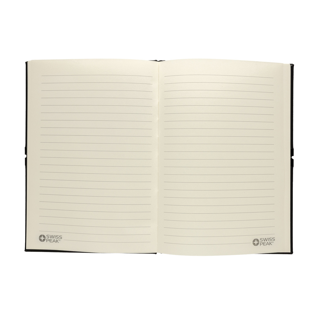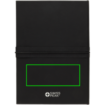 This luxury gift set includes all the essentials you need to get through your workday with comfort and style. The 480 ml double-walled water bottle is made from recycled stainless steel and features vacuum insulation to keep your drinks hot or cold for hours. Thanks to its leak-proof lid, you can carry it with confidence—no spills, no worries.To keep your most important keys always within reach, the set includes a premium Swiss Peak keychain with a glossy metallic finish and a beautifully crafted PU leather strap.Need to capture your ideas on the go? The set also includes a sleek business ballpoint pen with an 1000 metre writing capacity, paired with a soft-touch notebook made from recycled polyester PU. Inside, you'll find 160 cream-coloured pages made from recycled paper—perfect for jotting down notes, ideas, or to-do lists.All items are RCS certified, ensuring a fully verified supply chain for all recycled materials used.