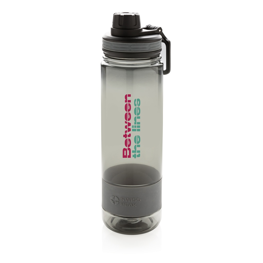 Leak proof Tritan bottle. Ideal to take on long outdoor activities or while doing sports. Including silicone ring for improved grip. BPA free. Capacity: 750ml.