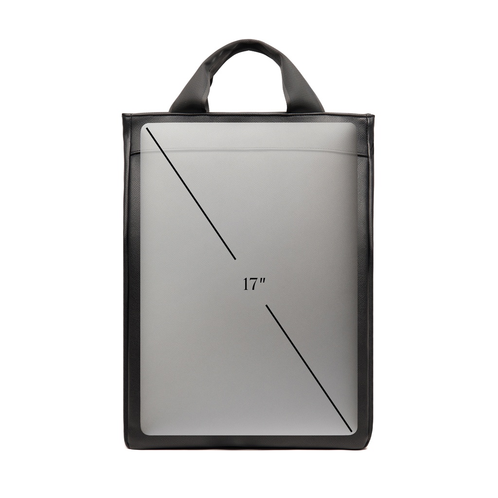 Effortlessly transition from the office to on-the-go with our understated and exclusive backpack. Sleek design and exclusive look. Features a padded computer compartment for added protection. Can be carried as a tote or as a backpack, making it versatile and convenient for any situation. The exterior of the backpack is made from recycled PU and the inside lining is made from recycled materials. Certified by RCS (Recycled Claim Standard), RSC certification guarantees that the entire supply chain of the recycled materials is certified. The total recycled content is based on the overall product weight. This product contains 27% RCS-certified recycled polyester and 8% RCS-certified recycled PU.Suitable for computers with an overall size of 17 inches. Please note that the dimensions of the display are not the same as the dimensions of the entire computer.