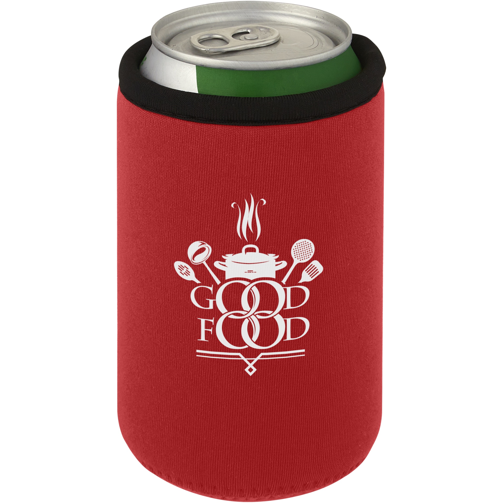 Recycled neoprene can sleeve holder that folds easily to fit in your pocket or purse. It has extra insulation keeping the beverage cool for a longer time, while also making the can comfortable to hold.