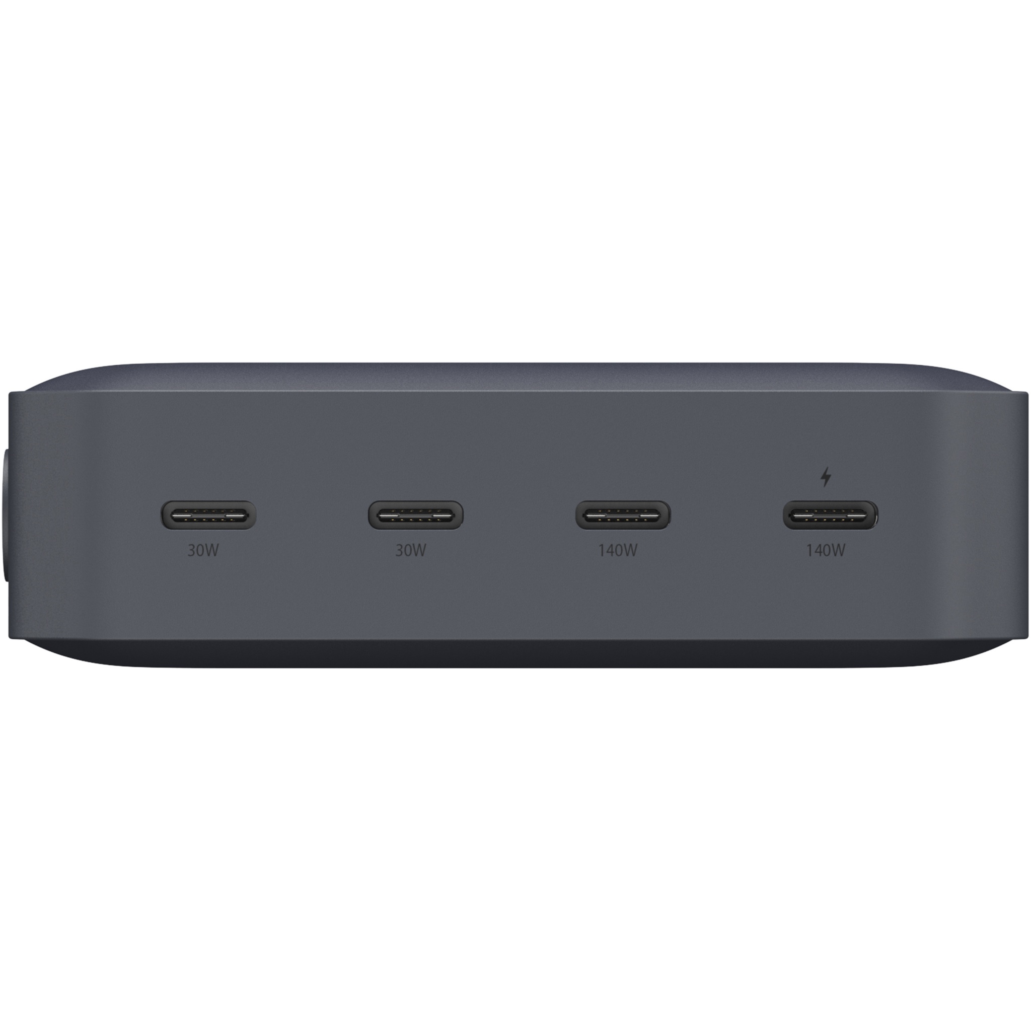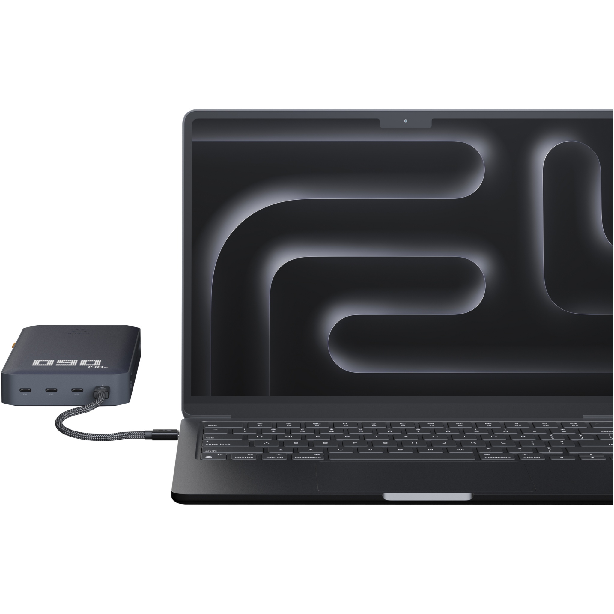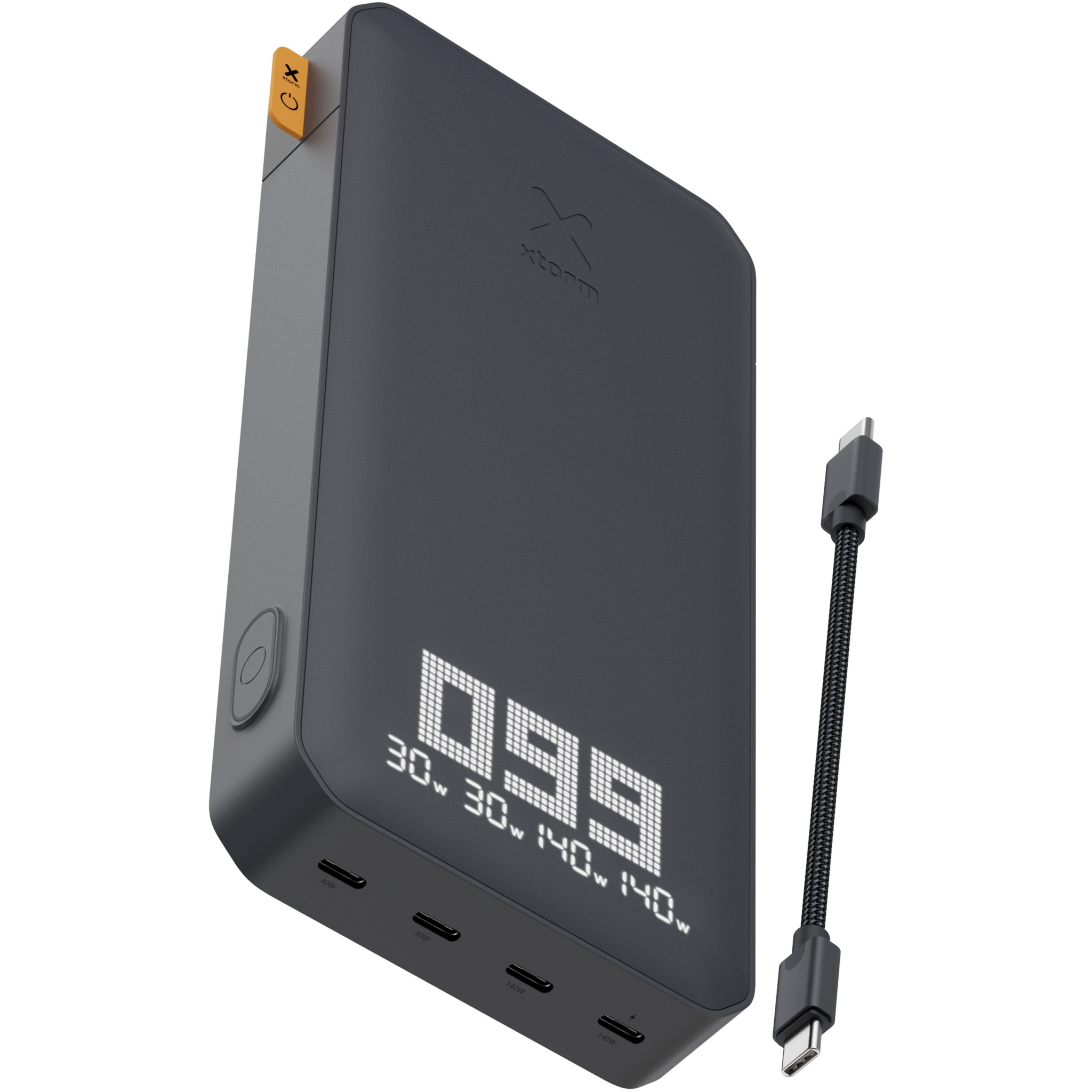 With its high capacity of 27.000 mAh, the XB403 Titan Ultra power bank can easily fast-charge your USB-C laptop, MacBook, tablet, smartphone or e-reader. With a combined total output of 200W and the 140W USB-C power delivery single output, this power bank is the most powerful power bank within the XB4 series. Thanks to the integrated 240W USB-C PD cable, you are immediately ready to charge your devices, anytime, anywhere. Airplane-proof. Can be fully recharged in less than 1.5 hours. Output: 2 x USB-C 3.1 140W power delivery, 2 x USB-C 30W power delivery. Input: USB-C 140W power delivery. Delivered with a built-in USB-C 240W power delivery cable, and a user manual.