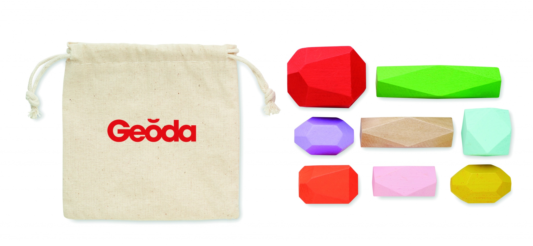 Logotrade ärikingituse foto: 8 virnastatavat puitkivi kotis