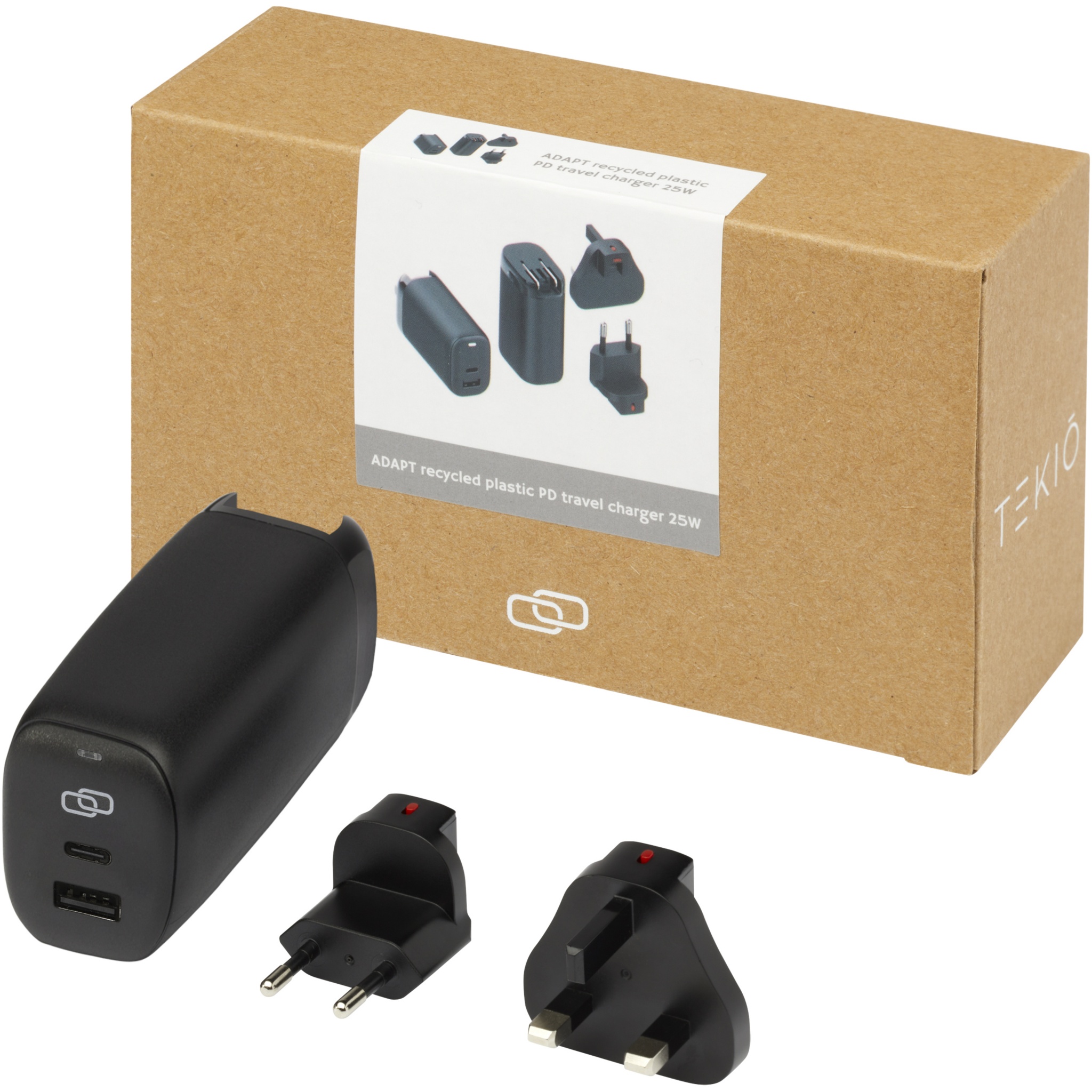 ADAPT taaskasutatud plastist PD-reisilaadija on kompaktne ja keskkonnasõbralik laadimislahendus, mis on loodud selleks, et hoida teid liikvel olles stiilsena. Taaskasutatud plastikust korpuse ning vasest ja nikeldatud komponentidest koosnev laadija pakub nii vastupidavust kui ka jätkusuutlikkust. Laadijaga on kaasas USA, EL ja UK plusg, mis võimaldab teil seda hõlpsasti erinevates piirkondades kasutada. Sisseehitatud trafo tagab sujuva võimsuse muundamise rahvusvahelisteks reisideks (AC 100-240V 50/60Hz). Sellel reisilaadijal on 2 porti (tüüp C ja USB A), mis pakuvad mitmekülgseid ja ülikiireid laadimisvõimalusi ning funktsioon PPS (programmeeritav toiteallikas) võimaldab adaptiivset laadimist. Tarnitakse esmaklassilises värvilise kleebisega jõupaberikarbis.