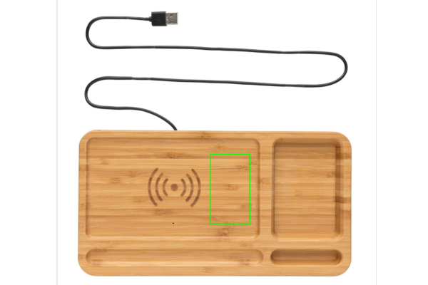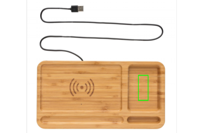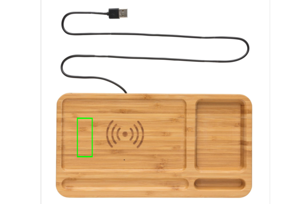 RCS (Recycled Claim Standard) sertifitseeritud ringlussevõetud ABS-ist valmistatud 10 W juhtmevaba kiirlaadija lauakorgiga. Kogu taaskasutatud sisaldus: 5% eseme kogukaalust (kaasa arvatud bambusest alus) Korraldaja bambusest välispind on täielikult valmistatud FSC 100 bambusest. Kaasa arvatud 120 cm C-tüüpi laadimiskaabel, mis on valmistatud RCS-sertifikaadiga taaskasutatud TPE-st. Pakitud FSC mix kraft karpi. Type-C sisend 5V/2A; 9V/1,67A. Juhtmeta väljund 5V/1A;9V/1,1A (10W)