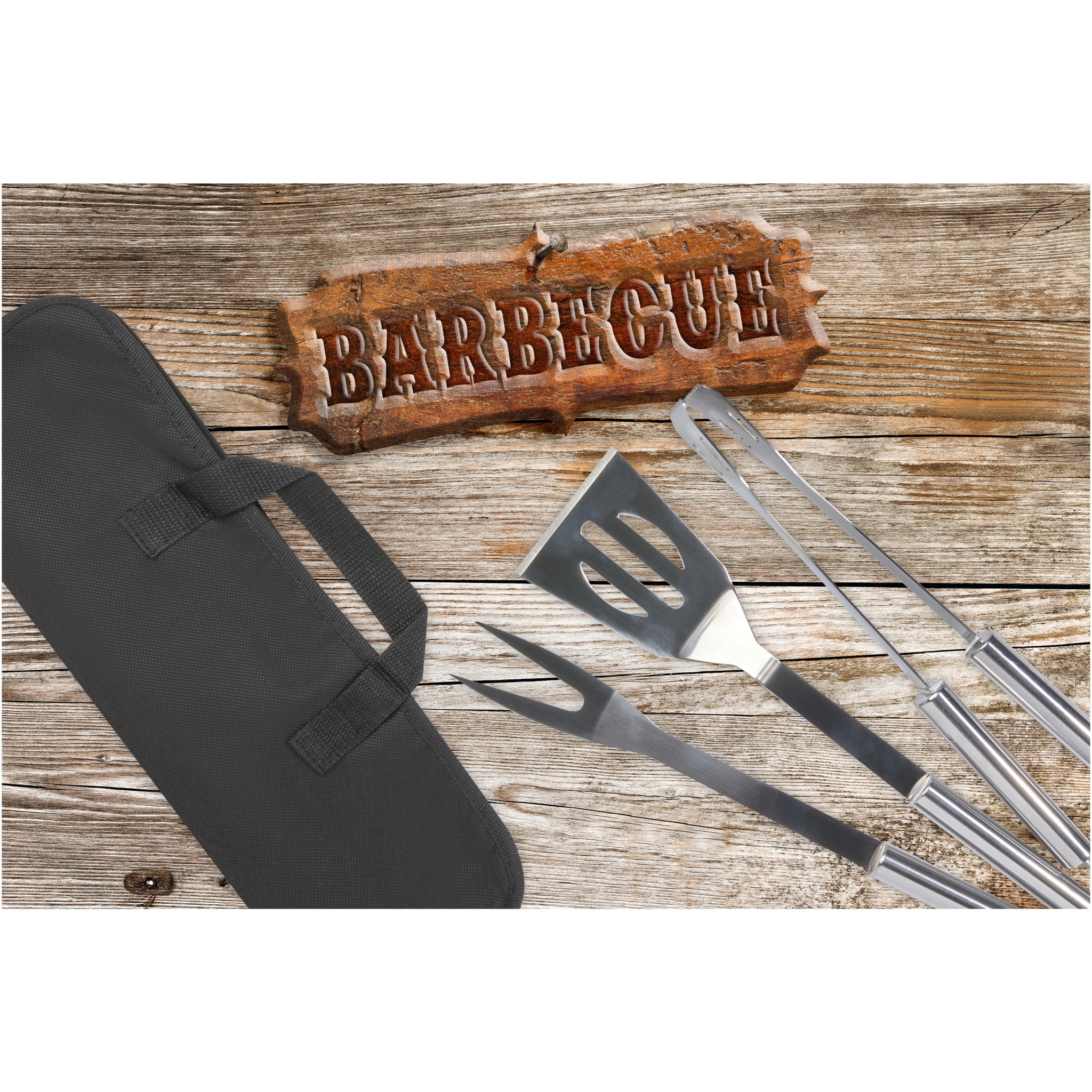 3-osaline grillikomplekt labida (34,8 x 7,5 cm), kahvli (35,4 x 3,35 cm) ja tangiga (35 x 6,8 x 4 cm). Kõik tarvikud tarnitakse kerges ümbrises, et oleks lihtne kaasas kanda ja hoiustada. Ideaalne grillitarvik aeda või sõprade ja perega õues grillimiseks kaasa võtmiseks.