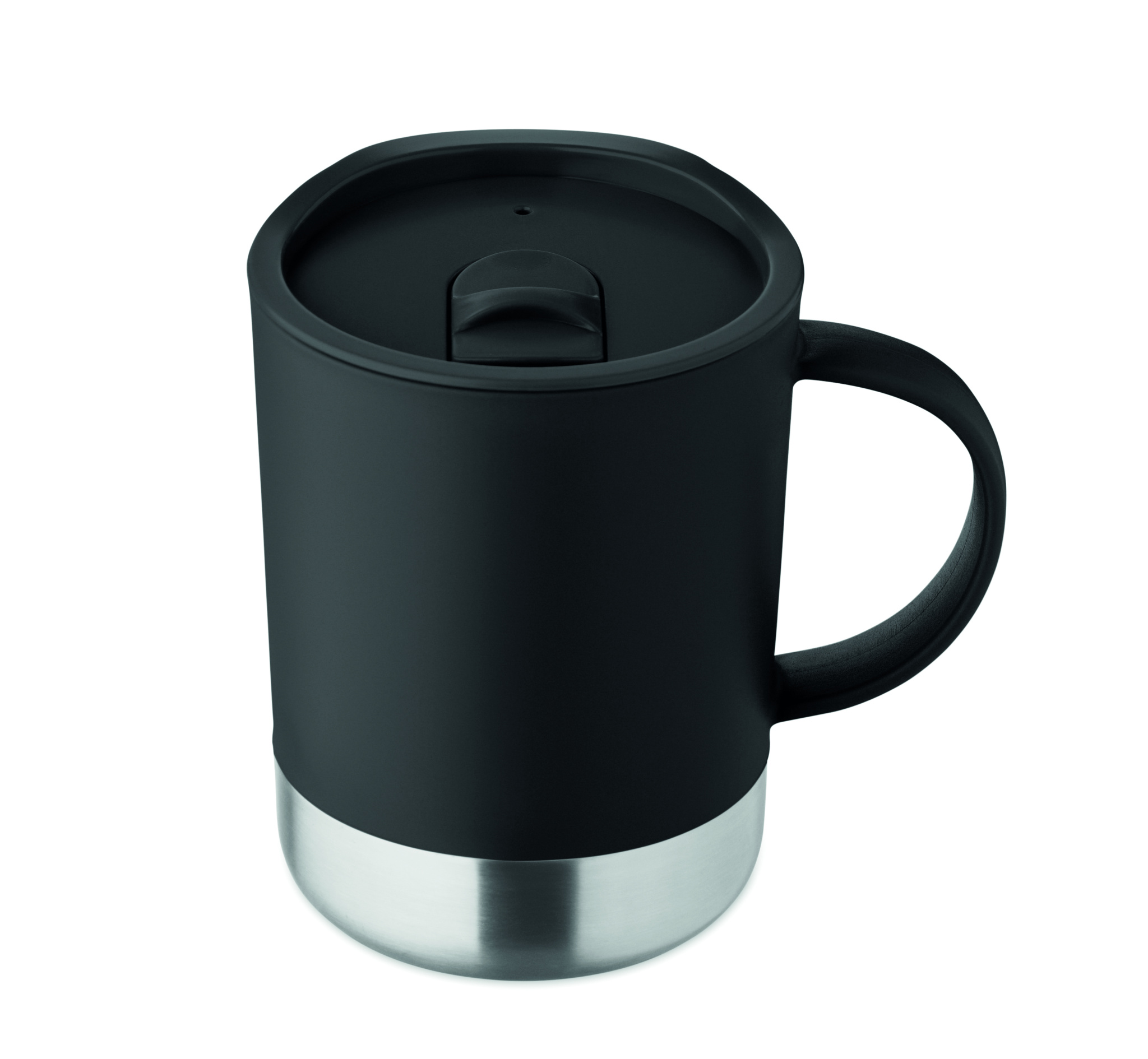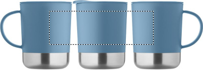 PP kruus taaskasutatud roostevabast terasest põhjaga (90% taaskasutatud roostevabast terasest ja 10% roostevabast terasest) ja PP libistatava kaanega. Mahutavus: 300 ml.