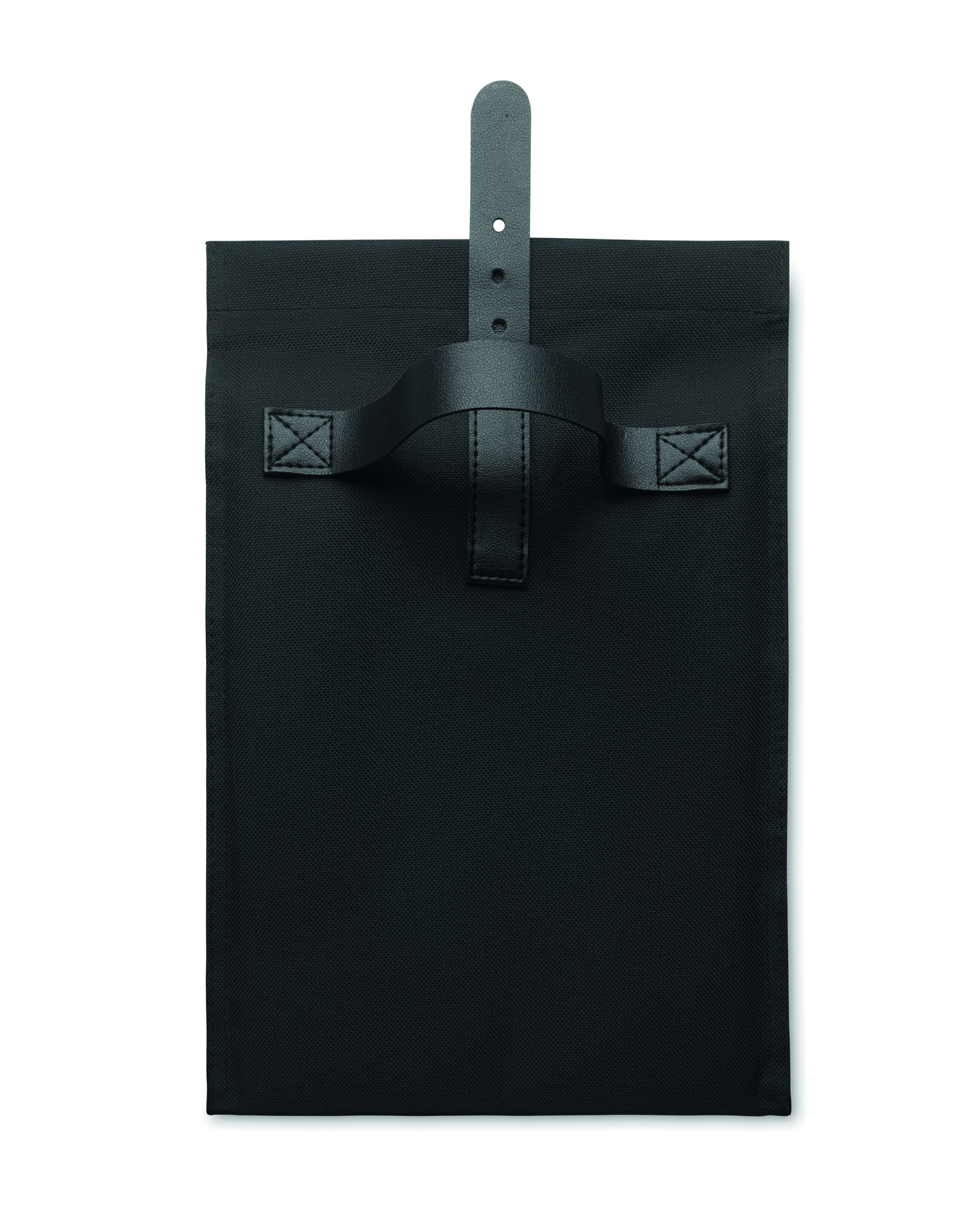 Must 600D RPET polüestrist isoleeritud rullitav lõunakott PU käepideme ja sulguriga. Isolatsioon: 3mm PE vaht PEVA-ga.