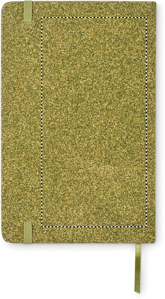 Roheline A5 märkmik kõvade kaantega, valmistatud 20% teepaksust, 30% korgist ja 50% polüpuuvillast. 160 lehte taaskasutatud paberist (80 lehte/70 g/m²). Elastne kummipael ja järjehoidja. FSC®-sertifitseeritud | FSC MIX CREDIT, N7.1, FSC-C213206