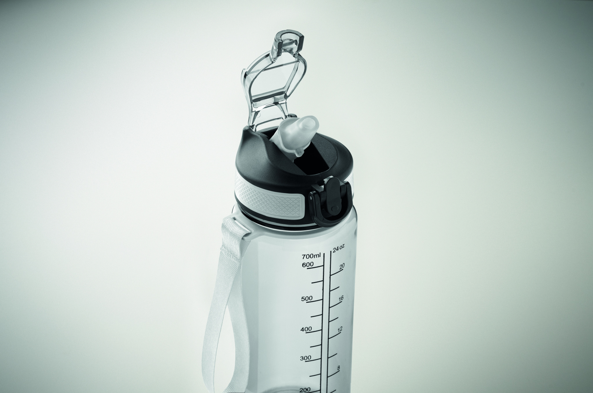 Motiveeriv spordiveepudel RPET-materjalist integreeritud kõrre, pehme silikoonist joogiavaga, ühe käega avatava klapiga kaane ja turvalukuga. RPET-satiinist kanderihmaga. Mahutavus 700 ml. Lekkevaba.