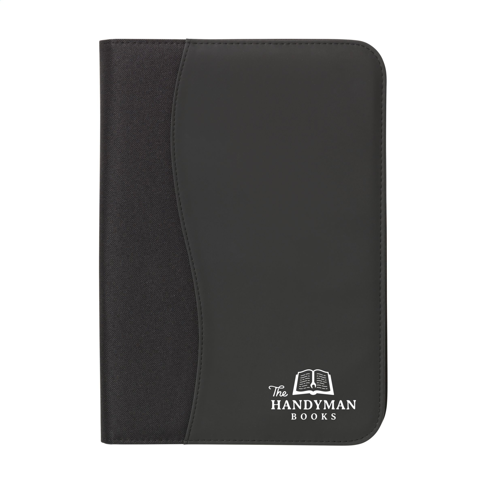 Konverentsi/dokumentide kaust valmistatud 600D polüester/kunstnahast A4 formaadis. Mahuka panipaiga, lisatasku taga ja lukuga. Sealhulgas kirjutusplokk ja pastapliiats.