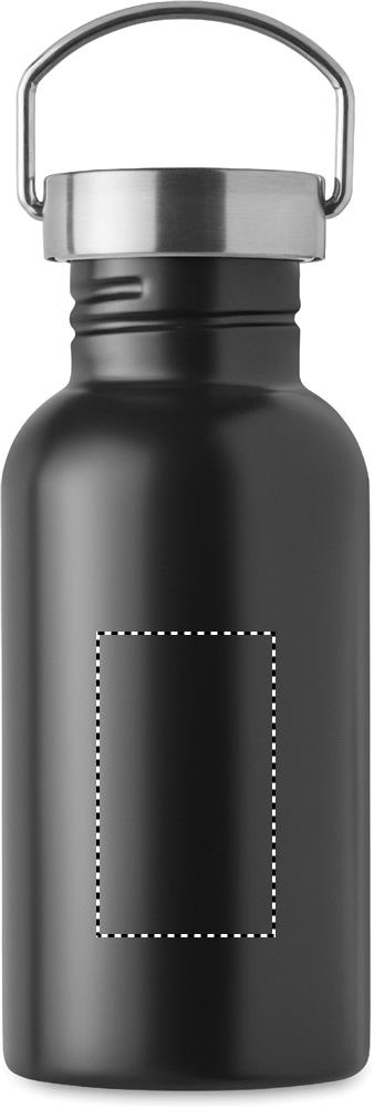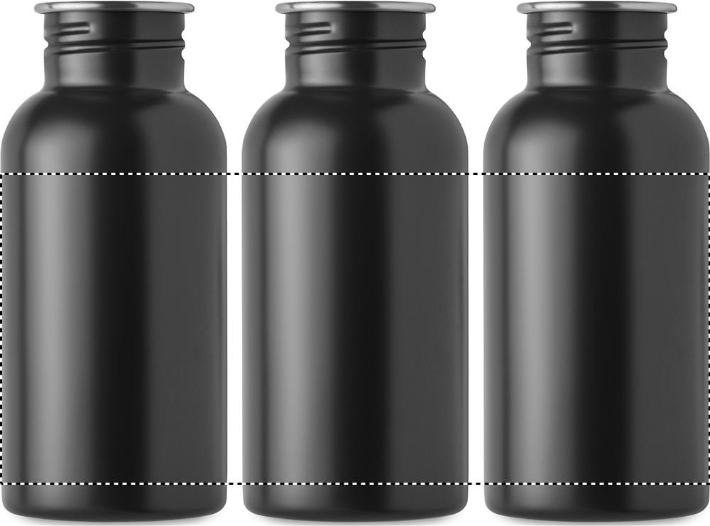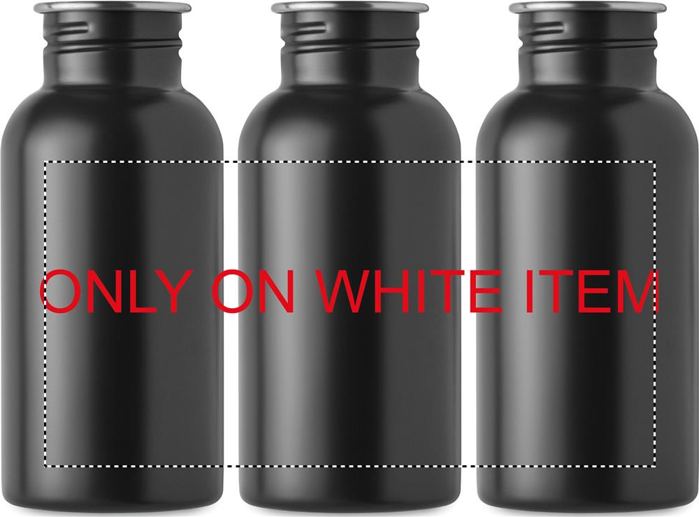 Must üheseinaline taaskasutatud roostevabast terasest pudel (90% taaskasutatud ja 10% uus roostevaba teras), kaane ja käepidemega. Lekkevaba. Maht: 500 ml.