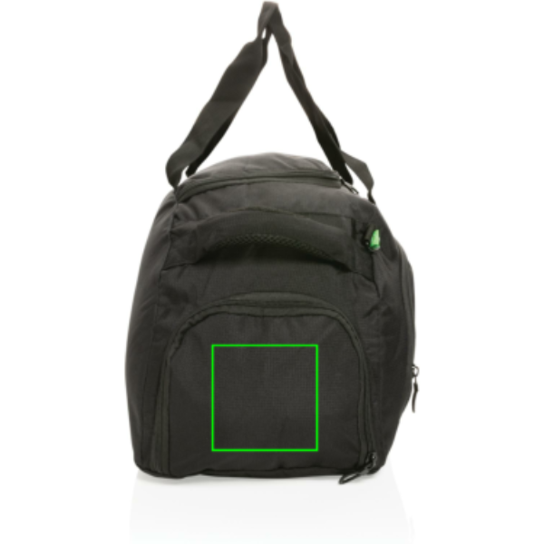 600D ripstop, lukuga esitasku siseorganitega, küljetasku, kinga tasku, käepidemed ja õlarihm, 4 alusjalga, PVC-vaba.