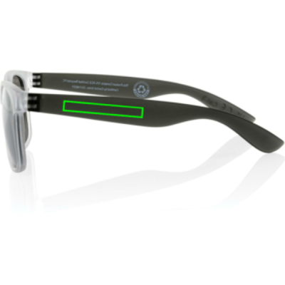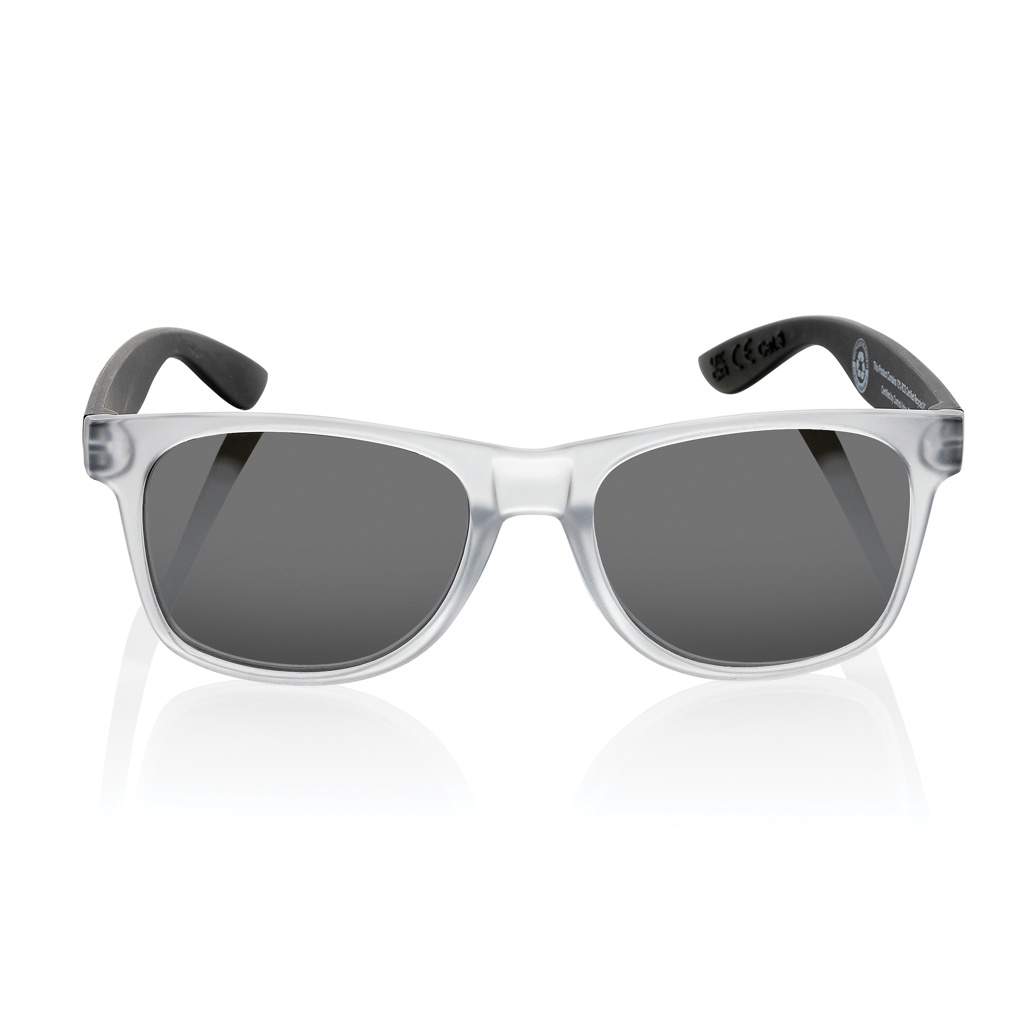 Päikeseprillid on valmistatud RCS-sertifikaadiga taaskasutatud läbipaistvast arvutiraamist. Värviliste peegelklaasidega. Taaskasutatud kogusisaldus: 72% eseme kogukaalust. RCS-sertifikaat tagab taaskasutatud materjalide täielikult sertifitseeritud tarneahela. Objektiivid vastavad standarditele EN ISO 12312-1, UV 400 ja CAT 3. Pakitud FSC® kraftkarpi.
