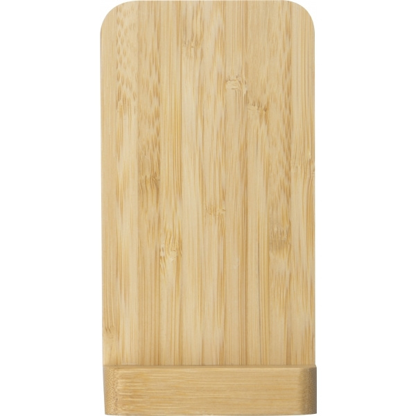 Bambusest juhtmevaba laadija ja nutitelefoni hoidik. Sisend DCSV = 2A, juhtmevaba väljund 10W koos laadimiskaabliga. Teie logo graveeritakse laadija põhjale.