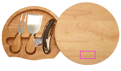 Puidust (kummipuust) juustulaud sisaldab juustunuga, juustukahvlit ja ettekandja nuga. Graveerime teie logo tahvlile.