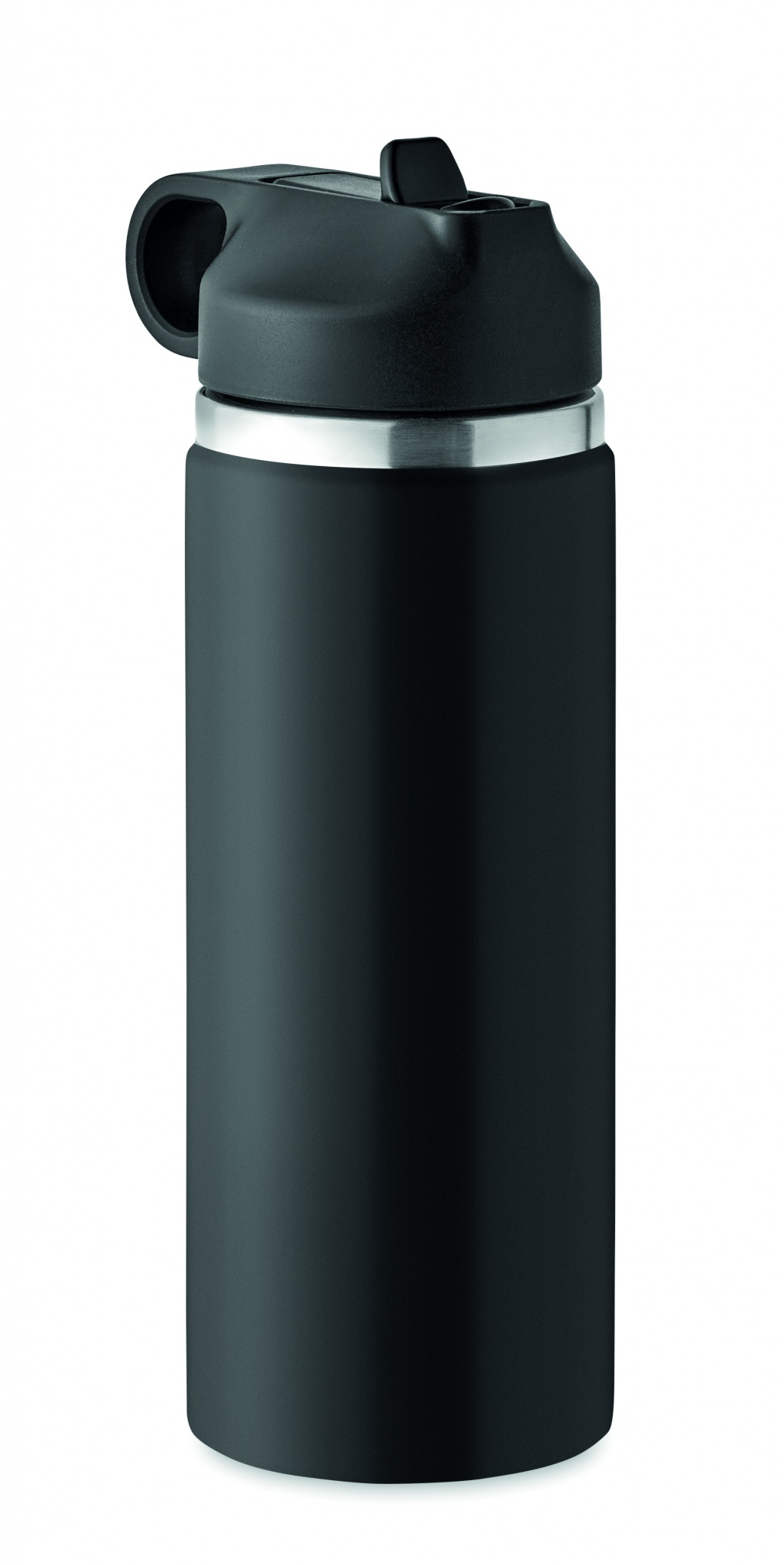Kahekordse seinaga taaskasutatud roostevabast terasest (90% taaskasutatud roostevabast terasest ja 10% roostevabast terasest) isoleeritud vaakumpudel PP-st käepideme kaanega ja integreeritud õlgedest sisseehitatud korgiga. Lekkevaba. Mahutavus: 500 ml.