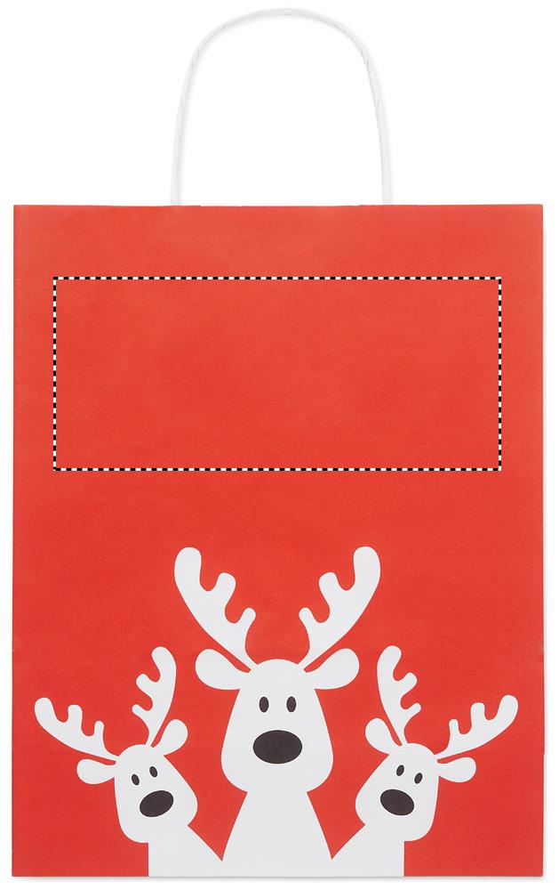 Jõuludeks mõeldud keskmise suurusega kinkepaberist kott (50% taaskasutatud paberist). 90 g/m². Valmistatud EL-is.