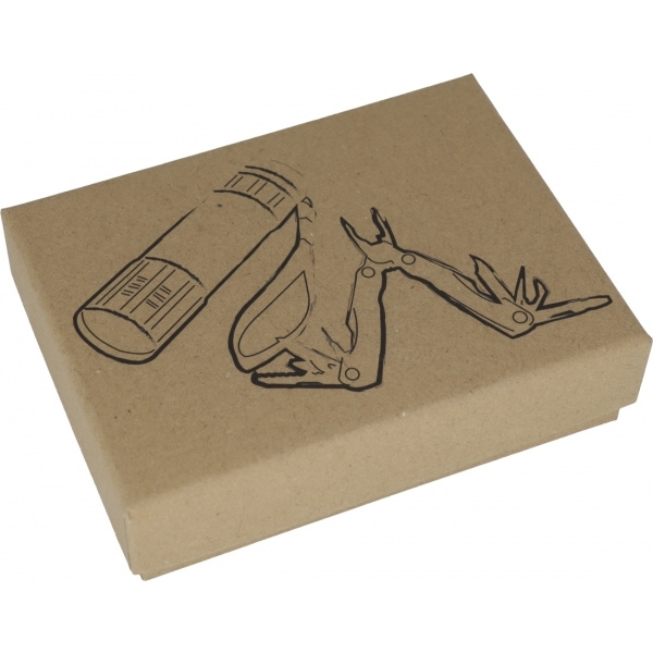Ideaalne duo! Köitke oma kliente selle kena komplektiga, mis koosneb 9 LED-iga alumiiniumist taskulampist ja multifunktsionaalsetest tangidest. Tangid sisaldavad ka küüneviili, konserviavaja, Phillipsi kruvikeeraja ja kaks erinevat piluga kruvikeerajat, nuga, sae nuga, pudeliavaja ja torkija. Graveerime taskulambile teie logo. Kolm AAA patareid on komplektis. Ühekordselt pakendatud karpi.