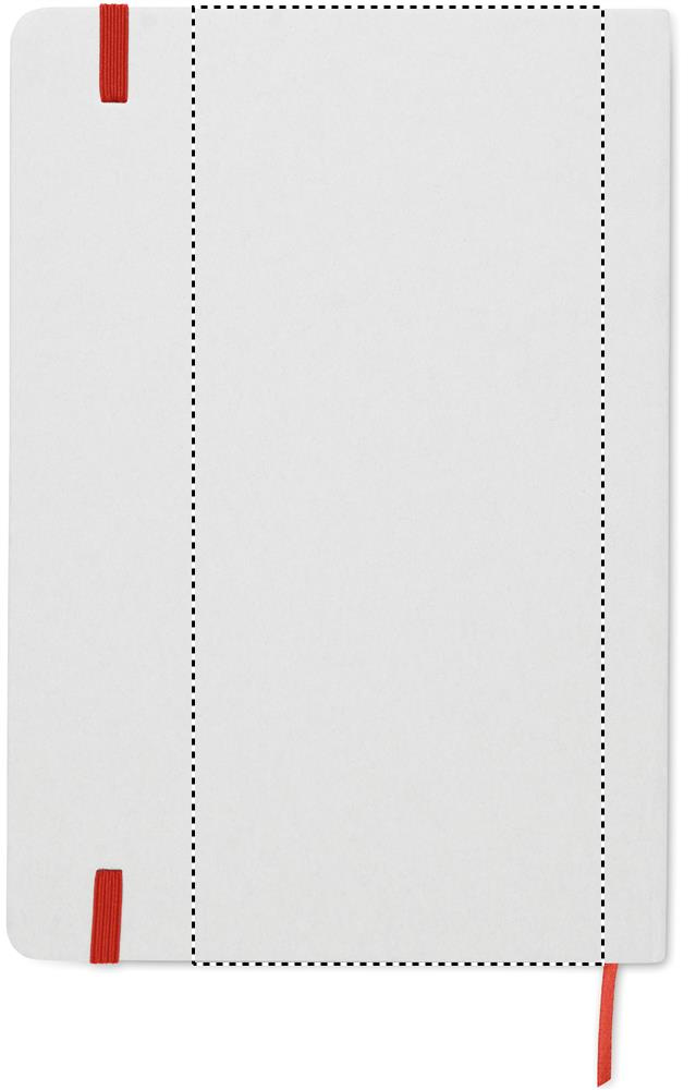 A5 märkmik kõva taaskasutatud pappkaanega. Valgete kaantega, 160 joonega taaskasutatud paberilehte (80 lehte). Elastne sulgemisrihm, järjehoidja pael. Pärast lasergraveerimist selgub värv.