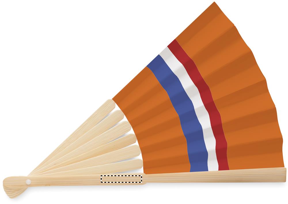 Manuaalne bambusest käsiventilaator lipukujundusega paberkangal.