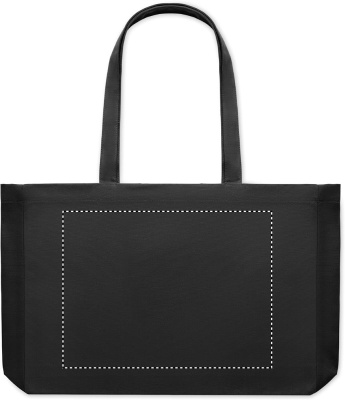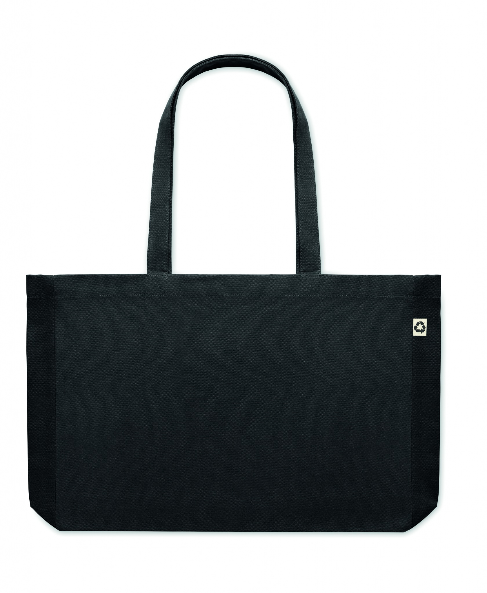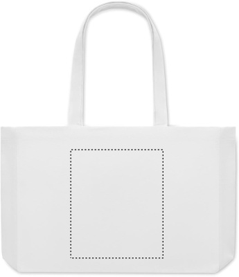 Taaskasutatud lõuendist ostukott või rannakott, 50% puuvill ja 50% taaskasutatud puuvill, pikkade sangade ja servadega. 280 gr/m².