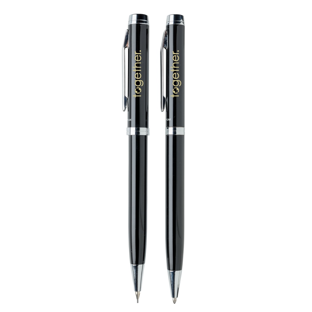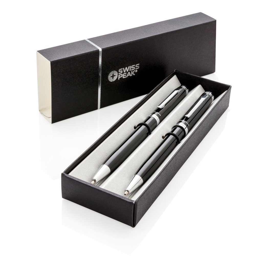 See pastapliiatsi ja pliiatsiga komplekt on tuntud oma kvaliteedi ja elegantsi poolest. Kaasas on 1200 m täidis saksa tindi ja 3 0,7 mm juhtmega pliiatsiga. Pakitud Swiss Peak kinkekarpi.
