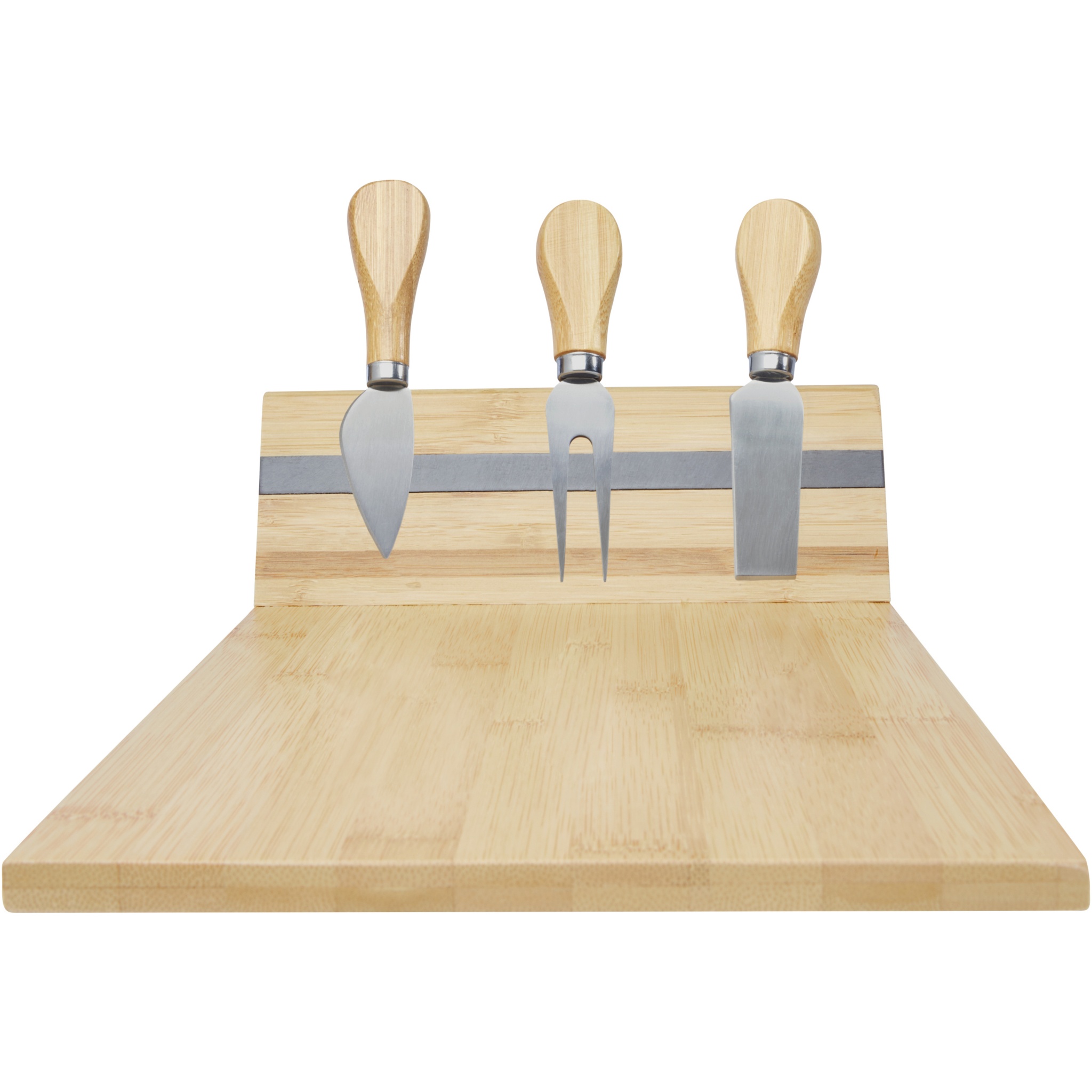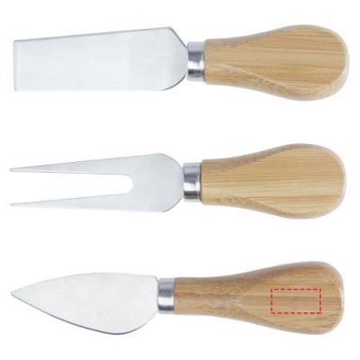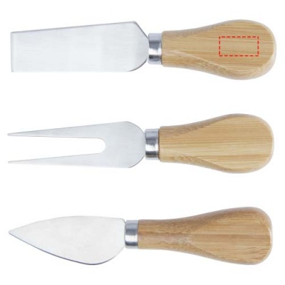 Bambusest juustukomplekt juustuplaadiga (30 x 20,2 x 7,6 cm), 2 juustunoaga (12,5 x 2,5 cm ja 12,5 x 2,7 cm) ja juustukahvliga (13,5 x 2,4 cm). Juustuplaadi küljel on magnetriba juustutööriistade kinnitamiseks, mis võimaldab juustu stiilselt serveerida. Kasutatav bambus on hangitud ja toodetud säästvaid standardeid järgides.