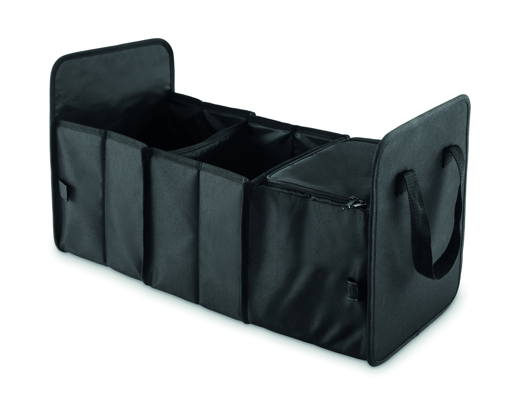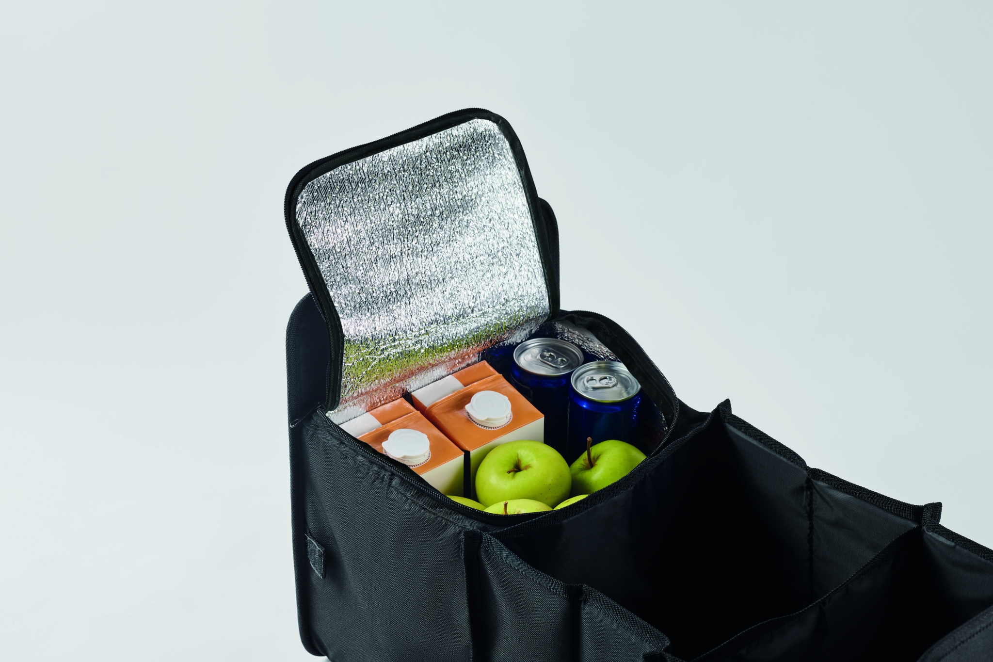 Kokkupandav auto pagasiruumi korrastaja 600D RPET polüestrist, 3 sektsiooniga, millest üks on jahutussahtliga.