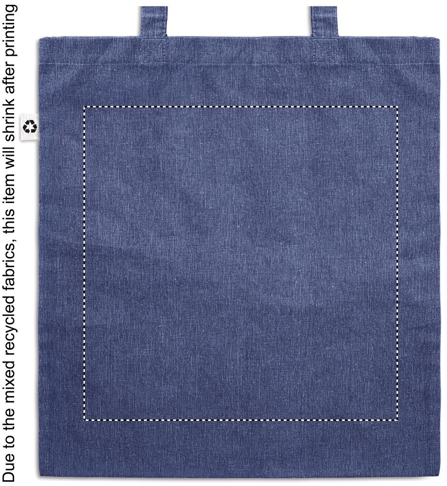 2-tooniline taaskasutatud puuvill (20%) ja taaskasutatud polüester (80%) pikkade sangadega ostukott. u. 140 gr/m². See üksus võib pärast printimist kokku tõmbuda.