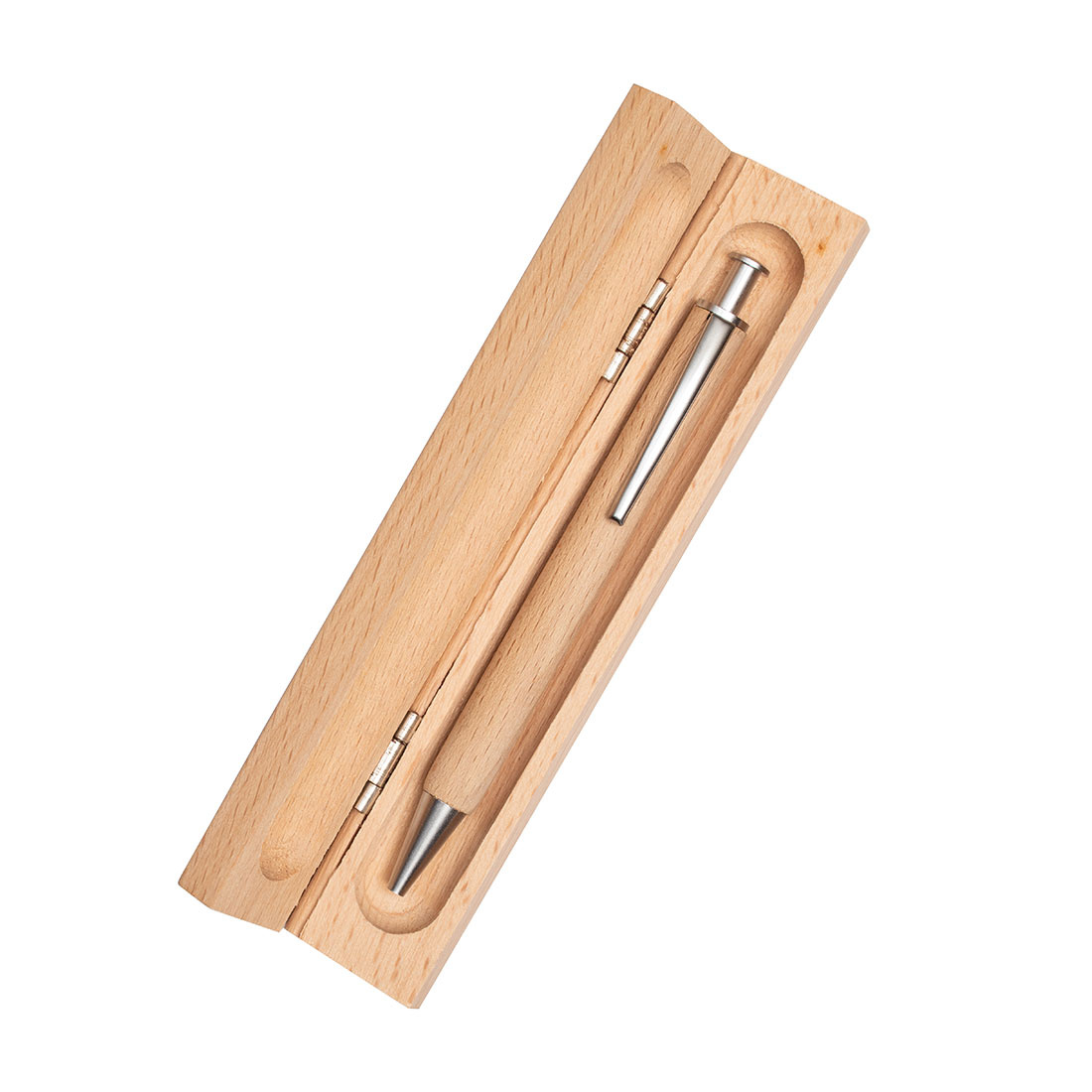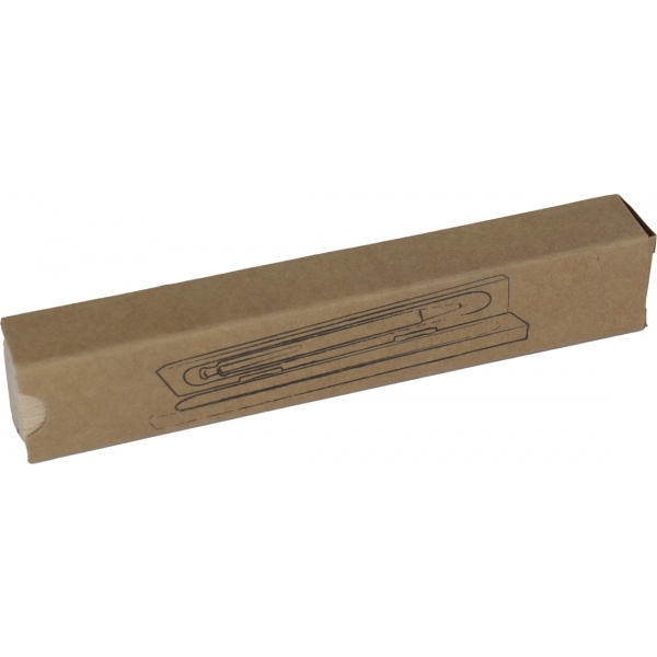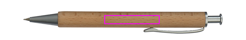 Sinise kirjaga metallsüsteemi täidisega puidust kuulpliiats ja puidust korpus. Lasergraveering on paigaldatud klambri alla.