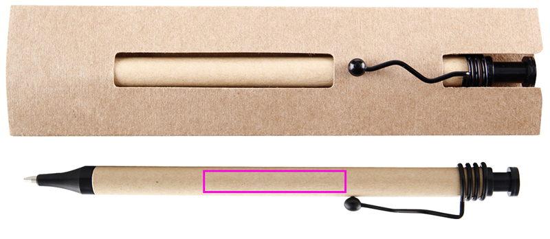 Sinise tindiga pastapliiats on valmistatud taaskasutatud papist, gofreeritud metallklambri ja plastikust otsaga, pakendatud pappkarpi. Trükime teie logo klipi alla.