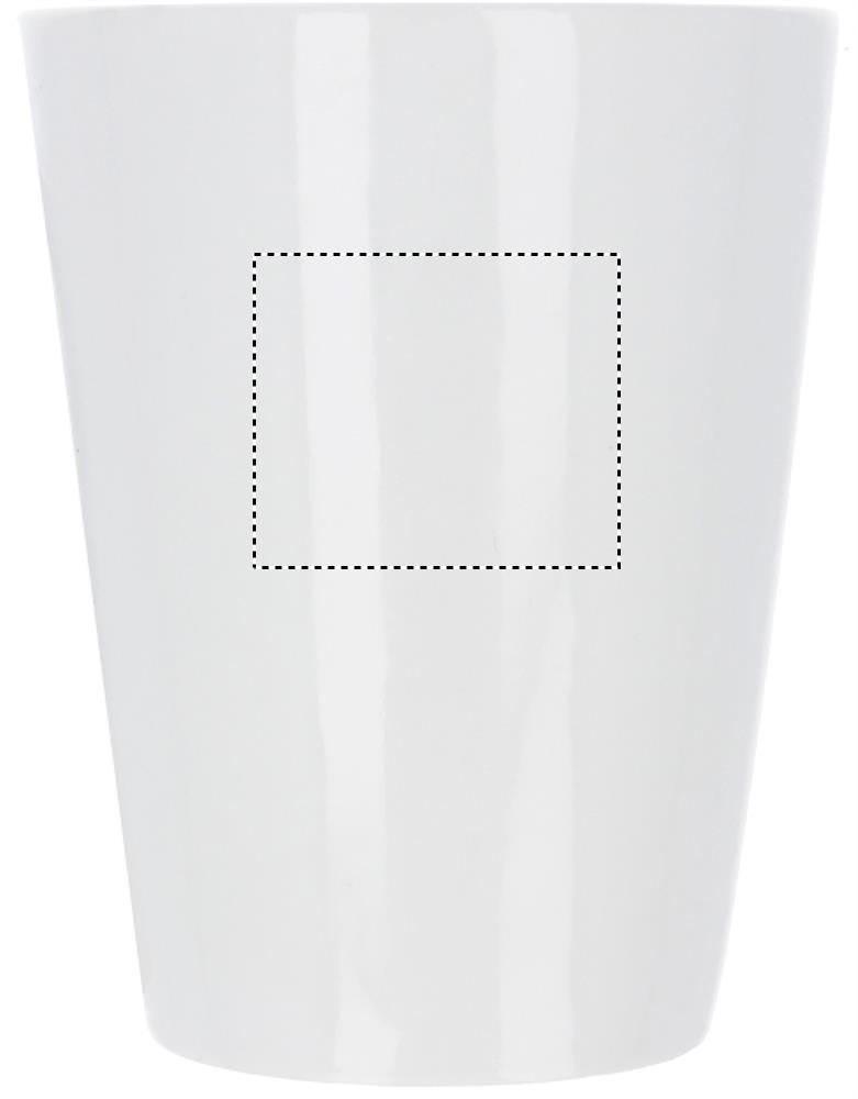Portselanist kooniline kruus mahuga 250 ml. Masspakend. Tampprint ei ole nõudepesumasinas pestav. Keraamiline ülekanne on nõudepesumasinas pestav.