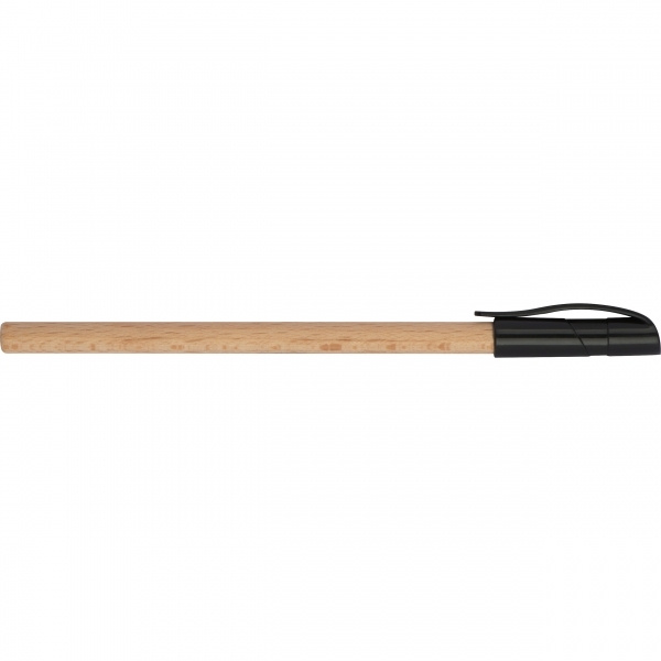 Puidust pastapliiats musta plastkorgiga. Teie logo graveeritakse.