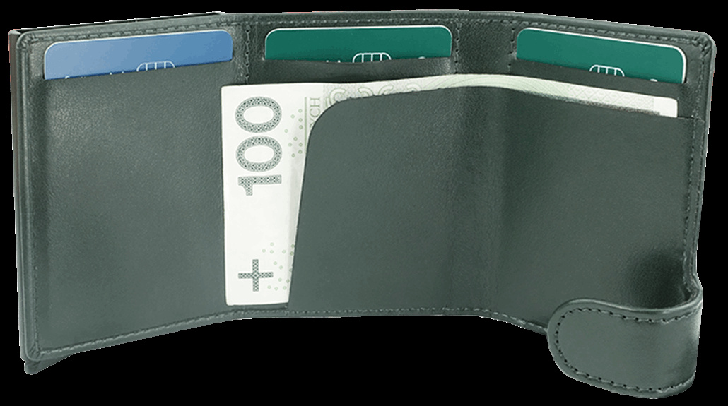 Kaardihoidjal on sees ka paberrahatasku, mahutab 9 kaarti. Registreeritud disain ® RFID-turvaelemen. Pakitud ilusasse kinkekarpi.