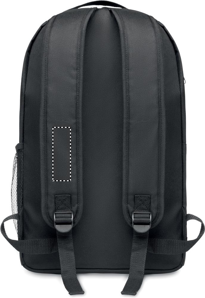 600D RPET-ist seljakott, mille esipaneelil on eemaldatav COB-valgusti. Valge COB-valgusti 3 erineva valguse heleduse seadistusega. Haagi ja aasaga suletav esitasku. Küljel võrktasku. Komplektis nööpatarei.