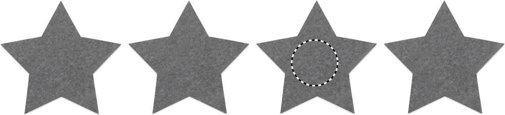 4 tähekujulise RPET-vildist rannaaluse komplekt, mis on pakitud kraftkarbis.