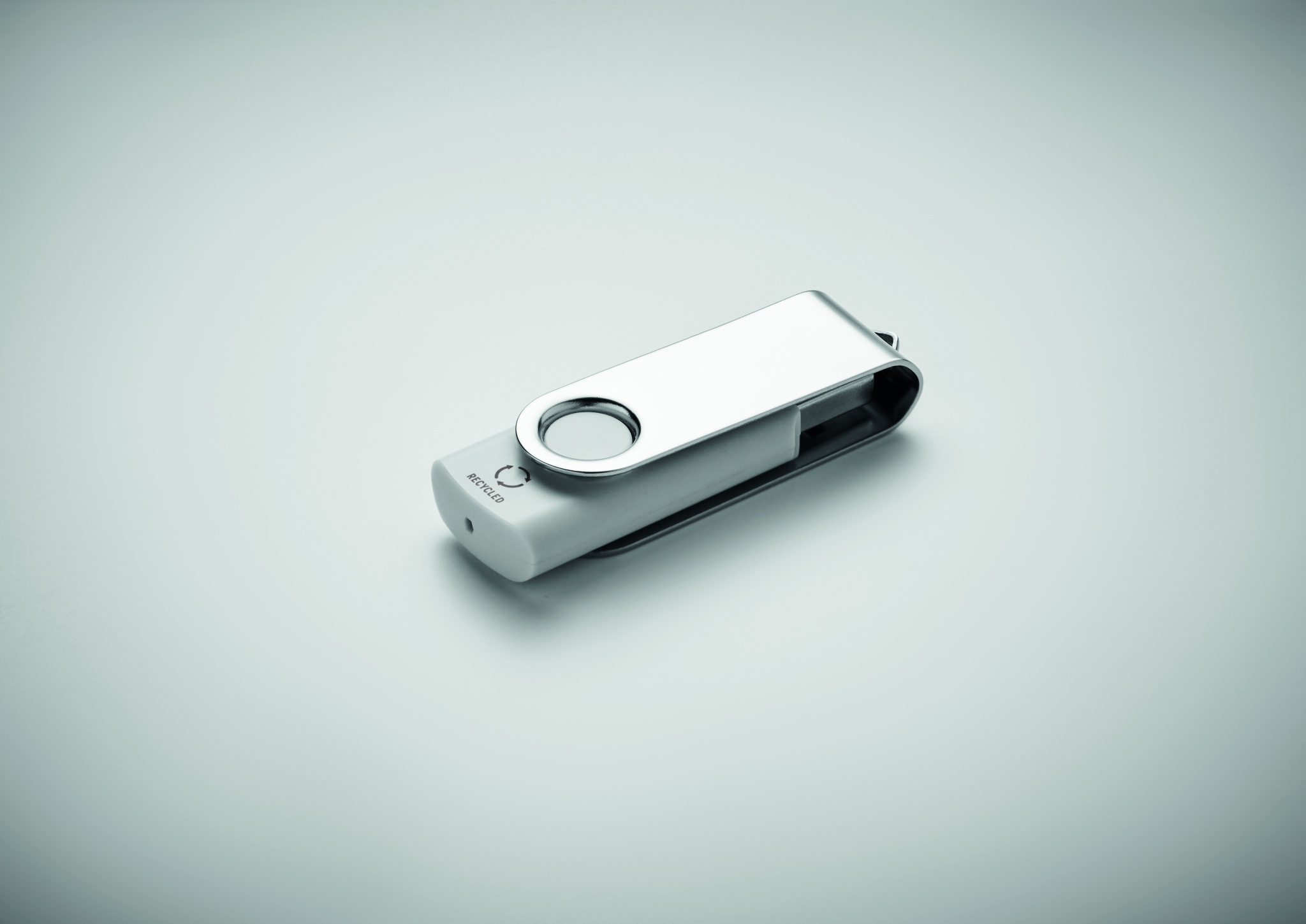 16 GB USB 2.0 välkmälu koos kaitsva taaskasutatud ABS-korpusega. Pöörake metallkaant ja ühendage selle kasutamise alustamiseks USB-porti.