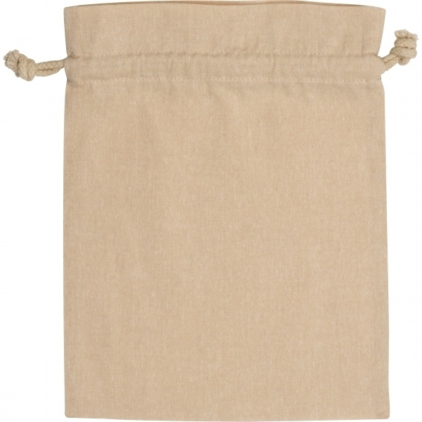 Öko-Tex® STANDARD 100 sertifitseeritud, taaskasutatud, keskkonnasõbralik puuvillane kott, grammkaal 110g/m². Teie logo trükitakse ühele küljele.