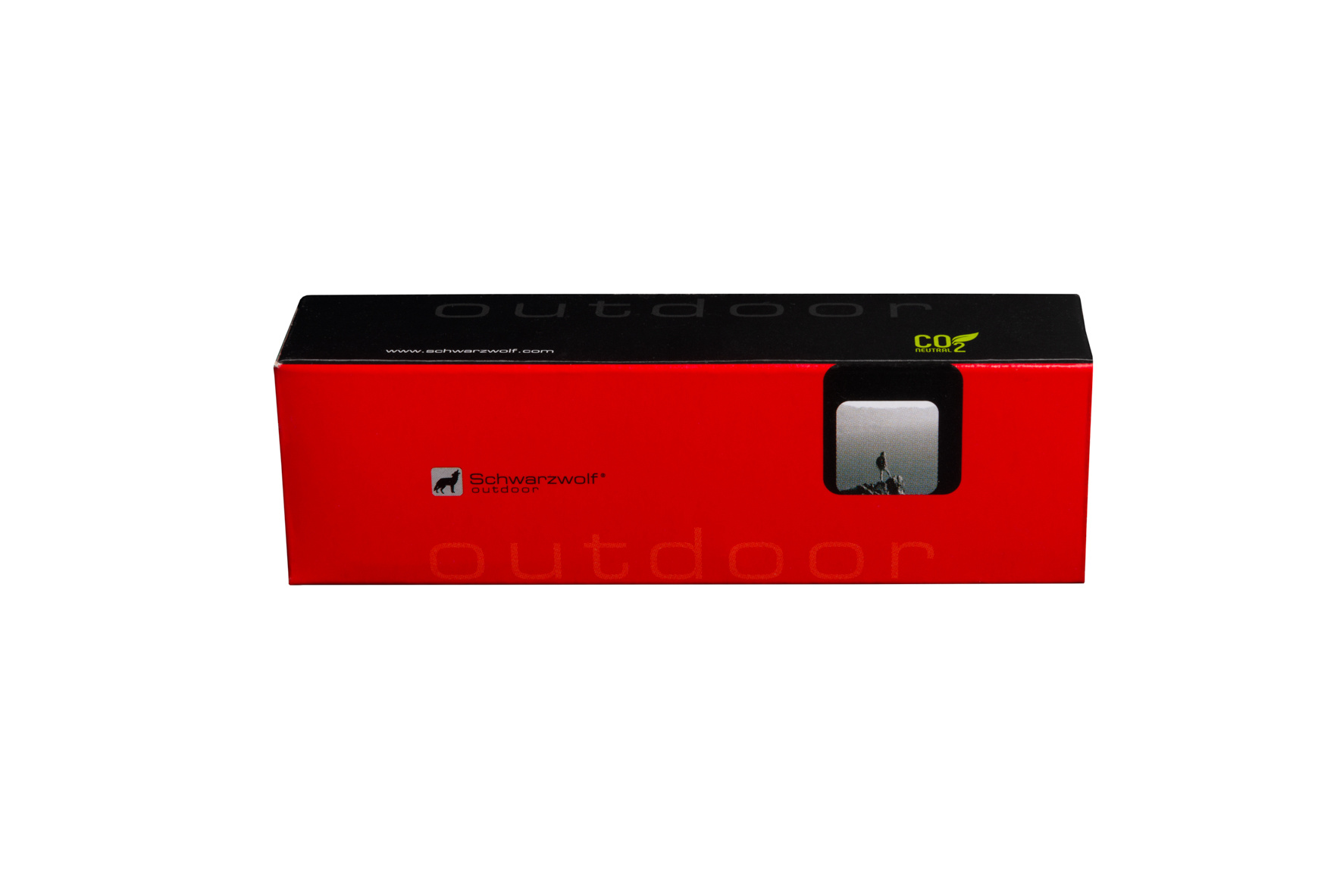 Multifunktsionaalne Schwarzwolfi taskunuga. Komplektis on 9 tööriista – nuga, käärid, saag, korgitser, pudeliavaja, konserviavaja, lamekruvikeeraja, ristkruvikeeraja ja karabiin. Noa käepide on ühelt poolt moodsa soonega ja teiselt poolt sileda pinnaga logo trükkimiseks.