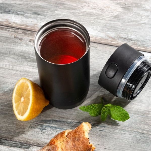 Kaheseinaline musta värvi termokruus mahuga 240 ml, mis on valmistatud roostevabast terasest. Kruus hoiab teie joogi temperatuuri ca. 5 tundi (mõõdetuna toatemperatuuril), mis teeb sellest suurepäraselt tee või kohvi kõrvale. Pakitud kinkekarpi.