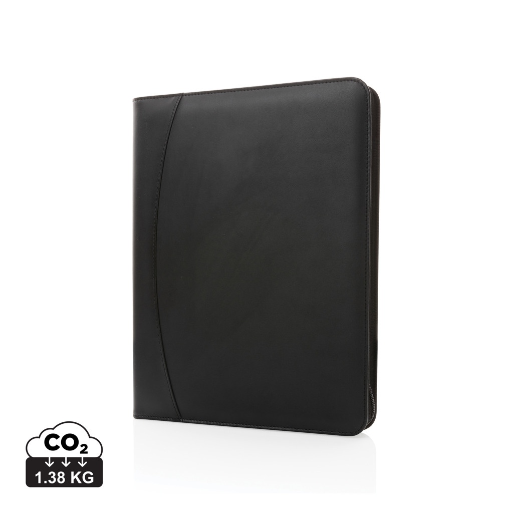 See kaunis tõmblukuga RCS rPU deluxe tehniline portfell on valmistatud RCS (Recycled Claim Standard) sertifitseeritud taaskasutatud materjalidest. RCS-sertifikaat tagab taaskasutatud materjalide täielikult sertifitseeritud tarneahela. Sile luksuslik pind annab portfellile šiki välimuse. A4 portfelli seest leiate vooderdatud 64 g/2 ümbertöödeldud paberist märkmiku, mis sisaldab 20 lehekülge. Sees on 1 telefonisuuruses tasku, telefonihoidik, pliiatsi aas ja 2 visiitkaardipesa. Valmistatud 100% taaskasutatud RCS-sertifikaadiga taaskasutatud PU-st. Taaskasutatud kogusisaldus: 14% kauba kogukaalust. PVC vaba.