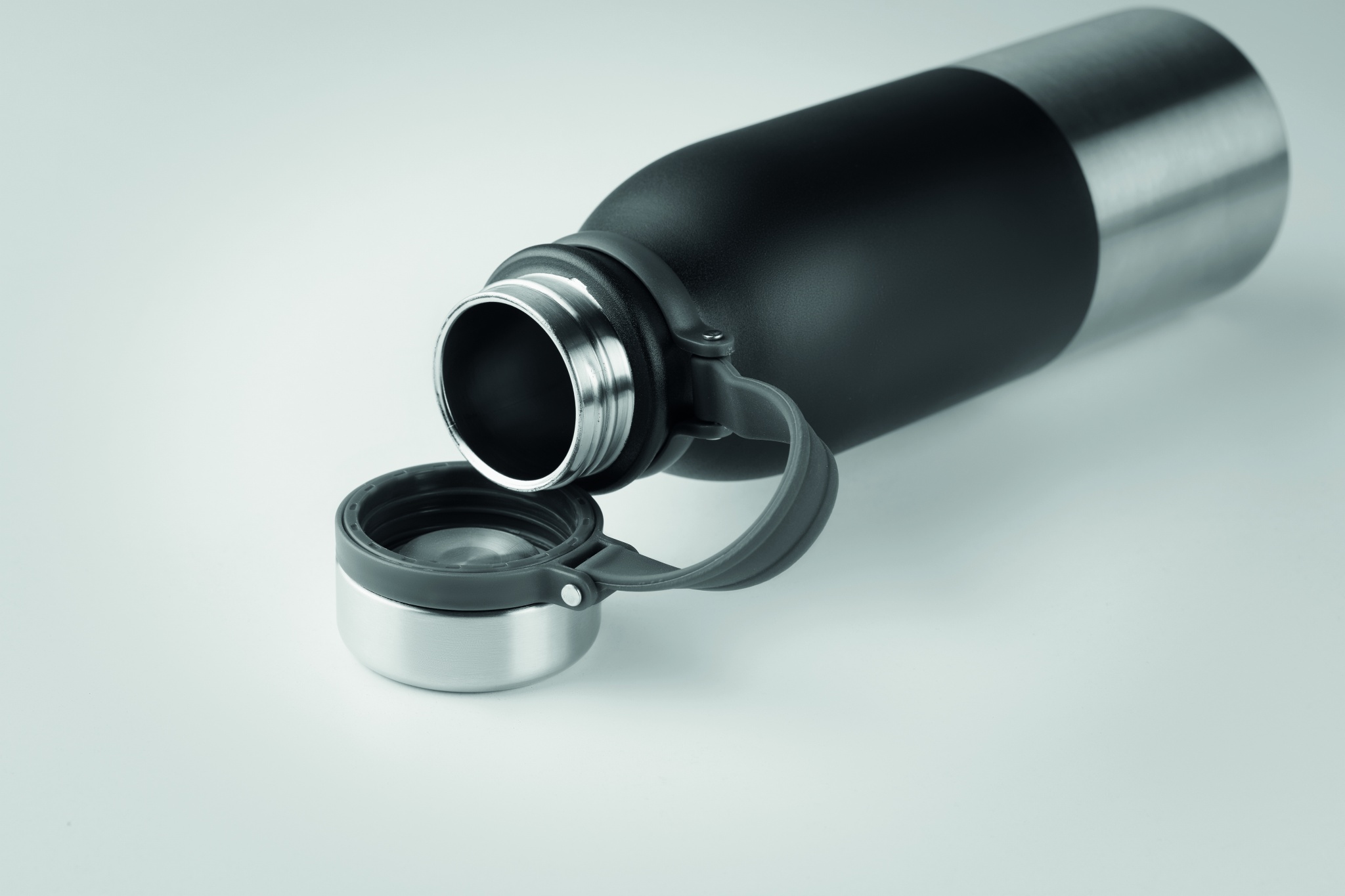 Kaheseinaline roostevabast terasest pulbervärvitud kolb silikoonkäepidemega lihtsaks kaasaskandmiseks. Lekkevaba. Mahutavus: 600 ml. Lekkevaba.