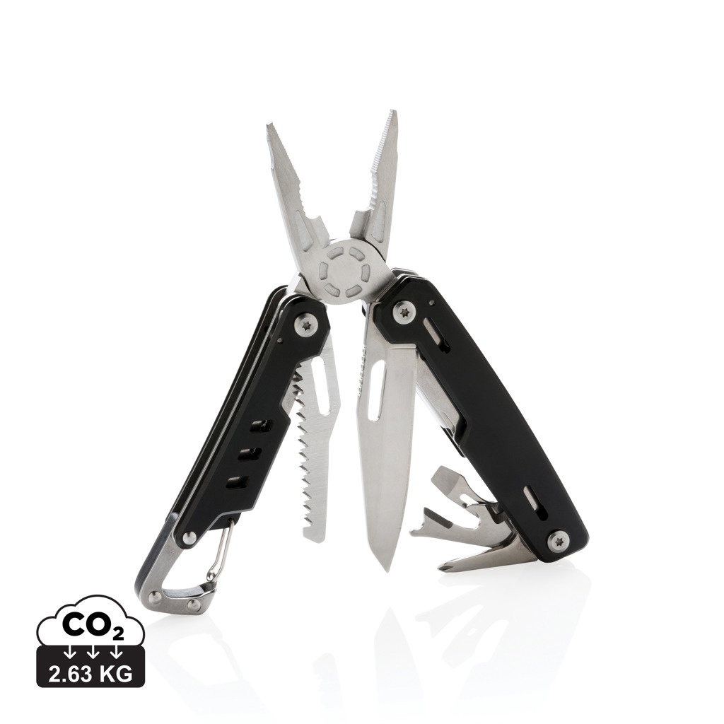 Tugev ja vastupidav 11 funktsiooniga multitööriist. Alumiiniumist korpuse ja roostevabast terasest tööriistadega. Tööriistade hulka kuuluvad: nõelotang, tavaline tang, traadilõikurid, nuga, ristikruvikeeraja, lamekruvikeeraja, saag, konserviavaja, pudeliavaja, traadieemaldaja, karabiin. Pakitud kinkekarpi.