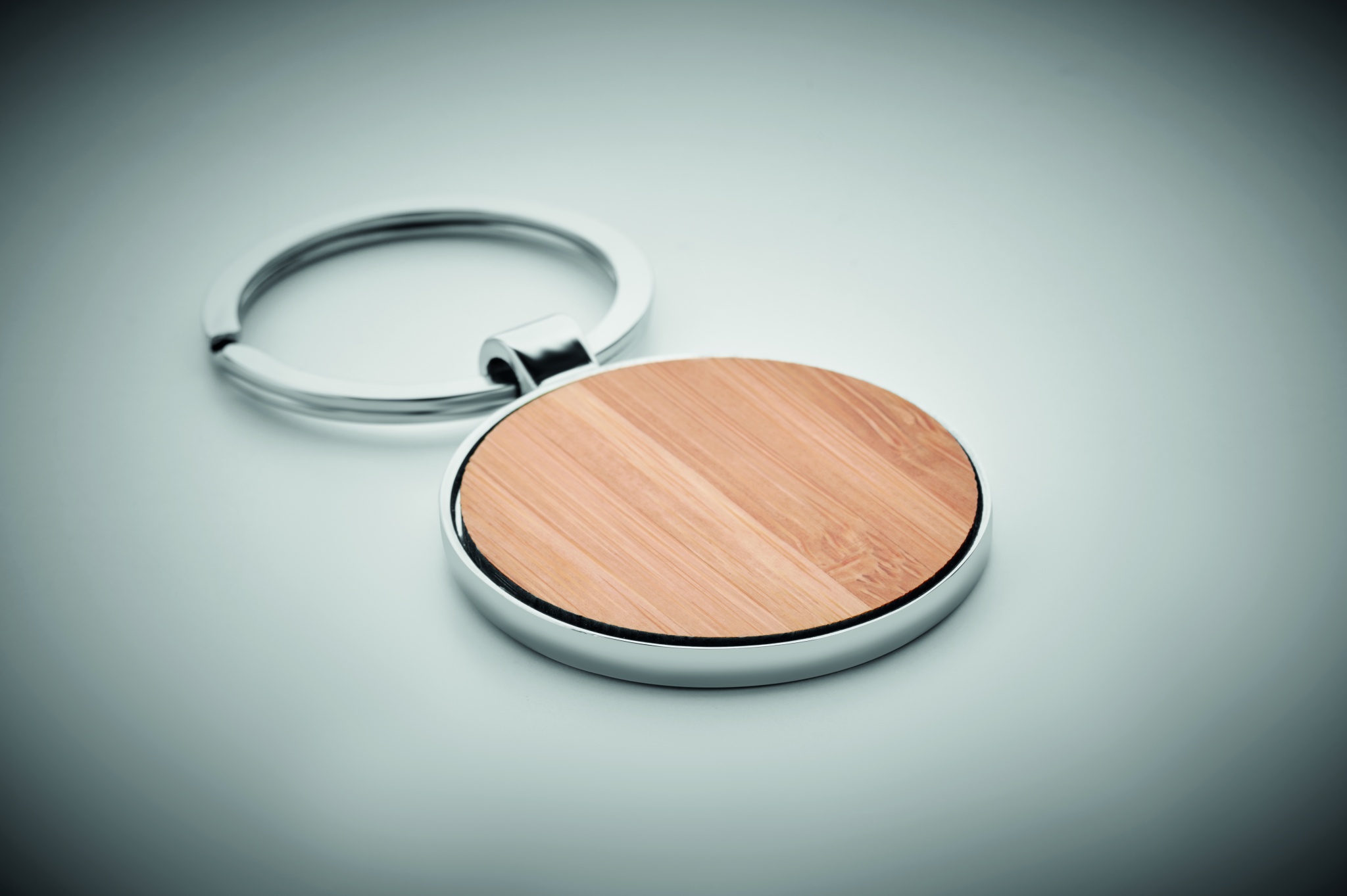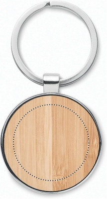 Ümmarguse kujuga tsingisulamist võtmehoidja bambusest esiosaga. Bambus on looduslik toode, ühe eseme värvis ja suuruses võib esineda väikesi erinevusi, mis võivad mõjutada lõppviimistlust.