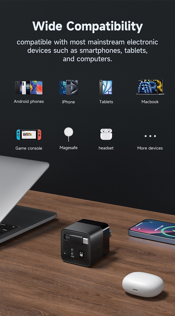 Logotrade firmakingituse foto: Urban Vitamin Mendocino 65W GaN laadija sissetõmmatav kaabel