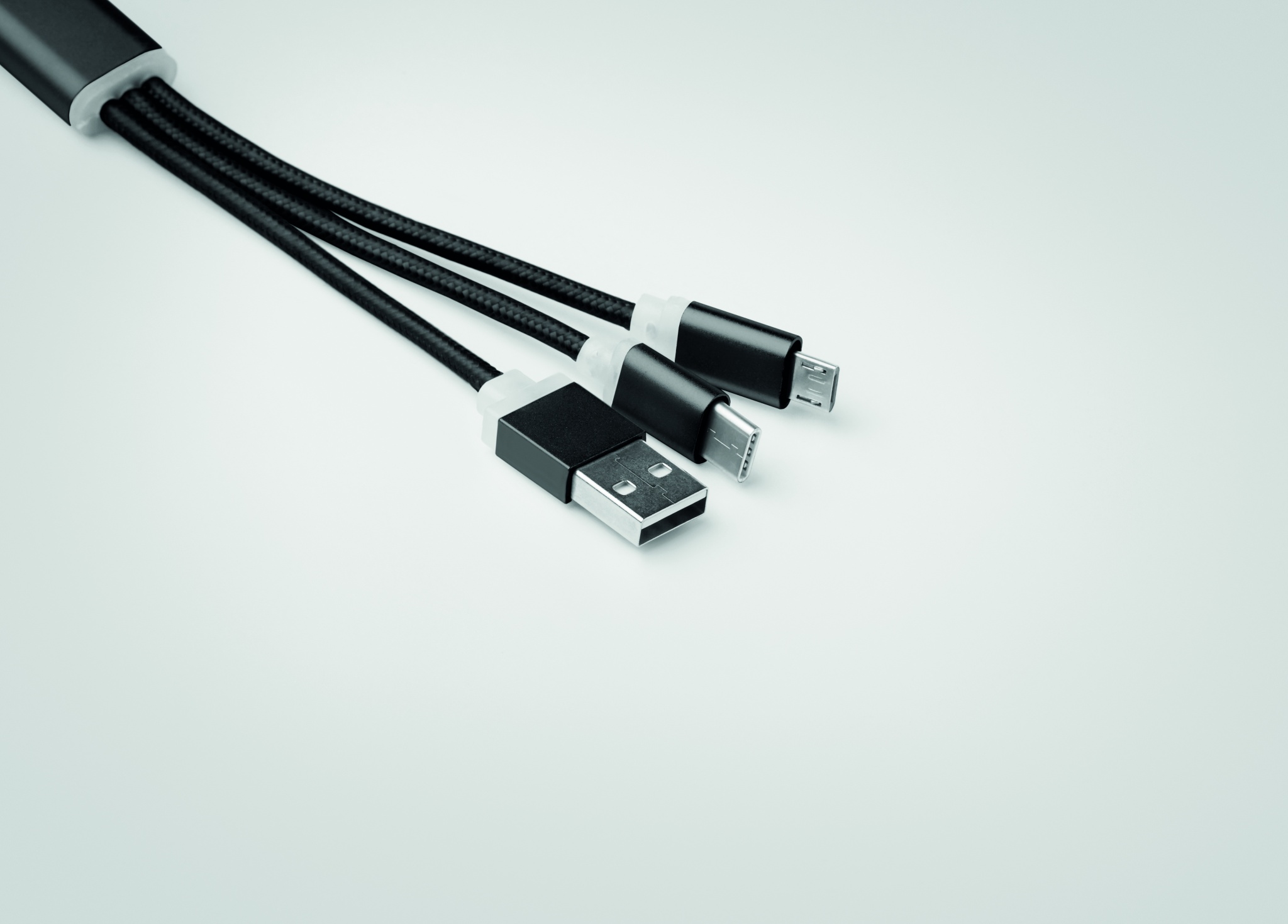 Võtmehoidja laadimiskaabliga USB-A kuni Micro-B (2 ühes kontaktiga) ja C-tüüpi.