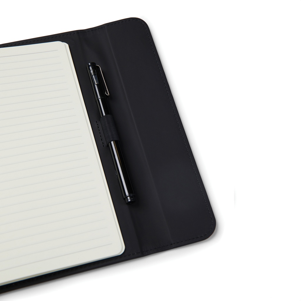 Stiilne A5-formaadis märkmik puhta puudutusega. Selle kaanel, mis on valmistatud 30% taaskasutatud matist PU-st, on magnetsulgur ja integreeritud pliiatsihoidja. Sees on 80 lehekülge/160 lehte 70 g/m² vooderdatud taaskasutatud paberit, mis sobib kõigi teie märkmete tegemise vajadustega. Paberi sisendit saab vahetada, mis võimaldab pikemat aega kasutada. GRS-i (Global Recycled Standard) sertifitseeritud GRS-sertifikaat tagab, et kogu taaskasutatud materjalide tarneahel on sertifitseeritud. Taaskasutatud kogusisaldus põhineb toote kogumassil. See toode sisaldab 54% GRS-sertifikaadiga paberit ja 5% GRS-i taaskasutatud PU-d.
