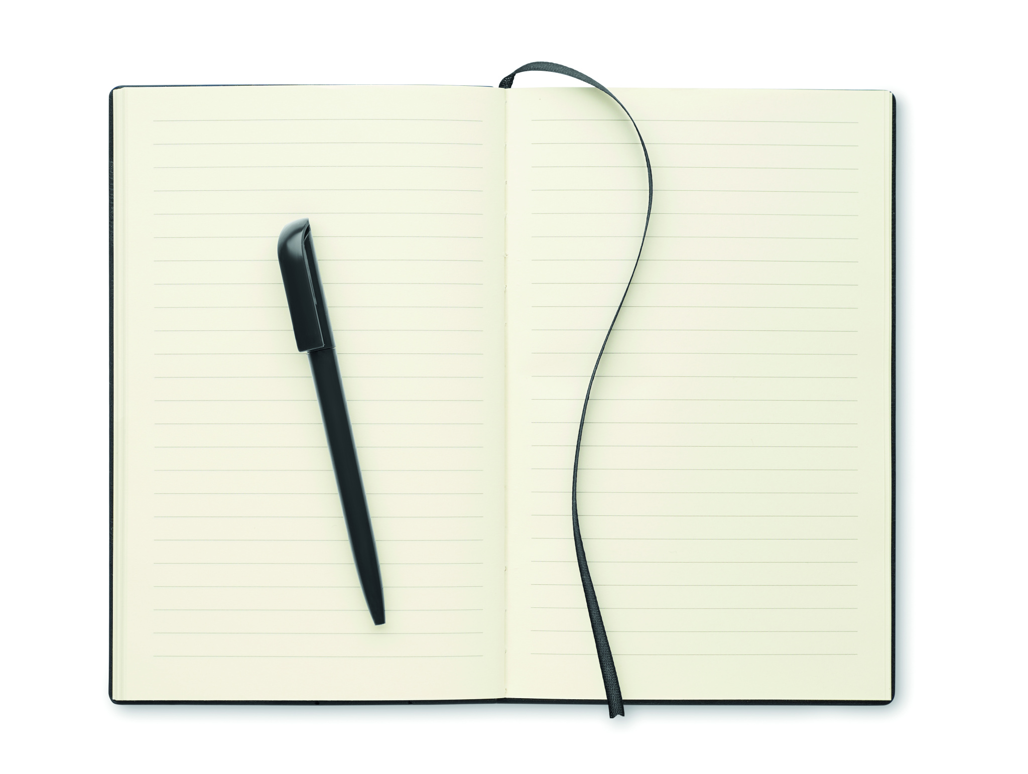 A5-kokoinen muistikirja strukturoidulla PU-kuorella ja ABS-kierrepallokynä selkä-kynäpidikkeen sisällä. Asia sidottu. 160 rivillistä sivua kierrätyspaperia (80 arkkia).