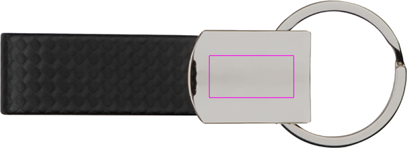 Tyylikäs metallinen avaimenperä hiilikuituisella hihnalla. Logosi kaiverretaan kromatulle pinnalle.